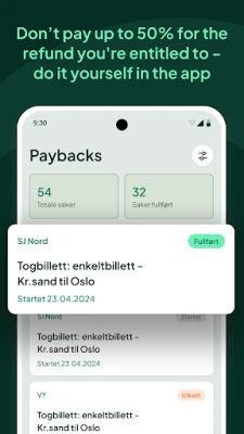 We have spent approximately 1.5 years developing and legally ensuring the quality of a digital application model that will change the way the world handles complaints/refunds from both public transportation and insurance claims. We are launching PAYBACK in the App Store and Google Play, an app that immediately sends claims for compensation and refunds in accordance with the responsible company's approved guidelines. By thoroughly mapping companies' terms & conditions and the legal guidelines they have set for refunds, we have constructed an app that ensures high-quality claims with each click until they are sent directly to the responsible company.
