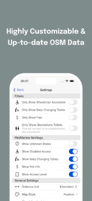 Offline capability: Essential bathroom locations and distance info available offline (map tiles requires internet connection, so you will only see a list of toilets sorted by distance when offline)