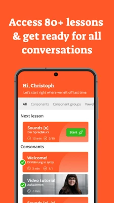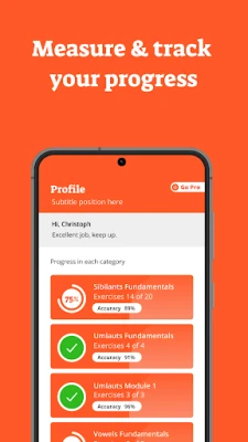 sylby is the top pronunciation learning app designed to help you master your communication skills in German. In our lessons, pronunciation experts teach you techniques and tricks based on the latest scientific research on language learning. After each lesson, practice with your own voice and receive instant feedback on your pronunciation. Within a few weeks, you can master your German pronunciation.