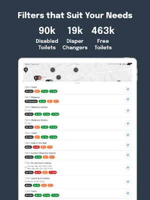 Never get caught without a bathroom again! Find nearby toilets instantly with this comprehensive toilet finder and bathroom map app.